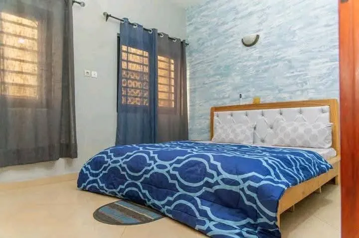 Disponible à Fidjrossè Houenoussou, un magnifique appartement meublé de 2 chambres salon entièrement climatisés au 1er étage :