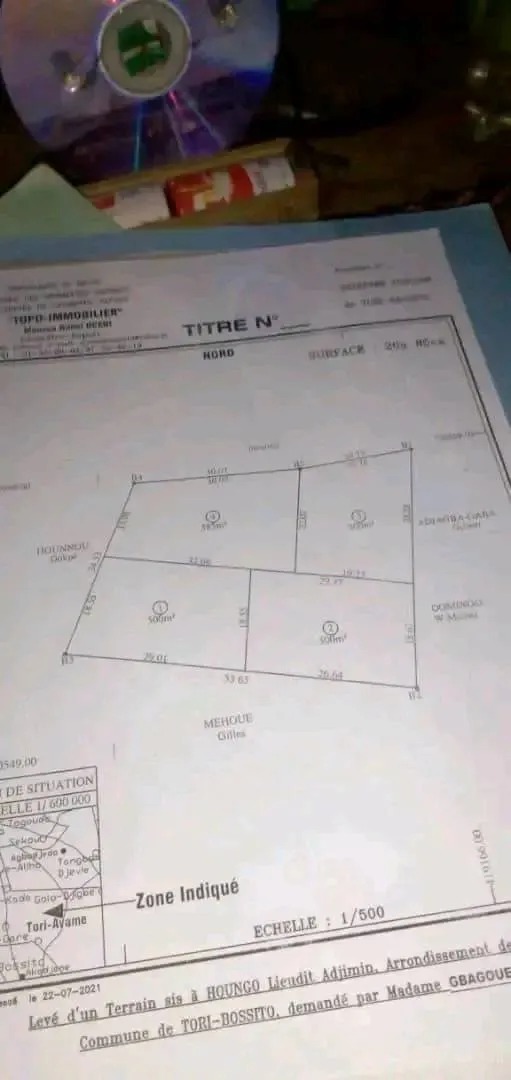 Parcelle de 500m² à vendre en urgence à Tori Avamey, Houngo, dans la zone de l'EPP Houngo, à 1 km du goudron Hêvié-Tori.