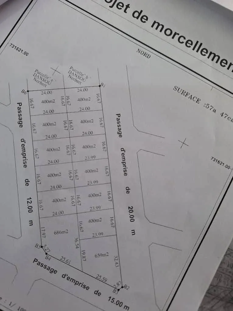 Nous mettons en vente plusieurs parcelles loties et recasées, extraites d'un domaine TF à Dangbo, près de l'Institut de Mathématiques et de Sciences Physiques. Ces parcelles sont à seulement 800 mètres du goudron et présentent un excellent potentiel pour la construction.