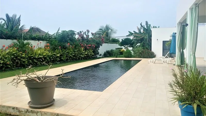 Signaler l'annonce : "Villa de 4 chambre(s), d’une superficie de 180 m², de type Moderne, à louer dans la ville de Mbour, Sénégal, au prix de 1 500 000 FCFA."